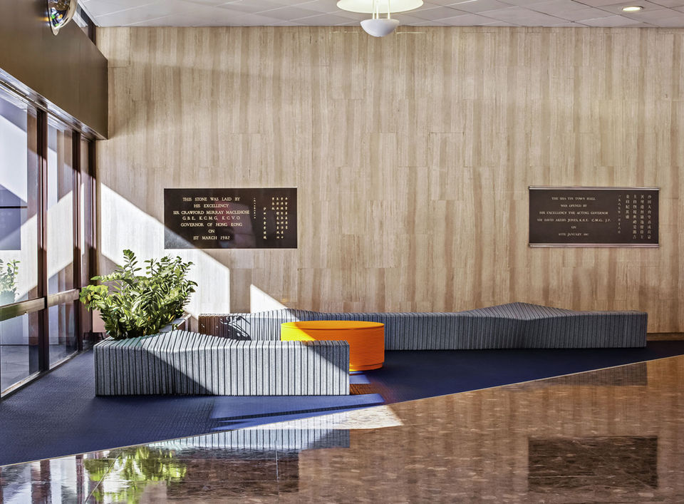 HIR Studio in Hong Kong designed a series of public benches in a district town hall, by using recycled household plastic waste from the same district.